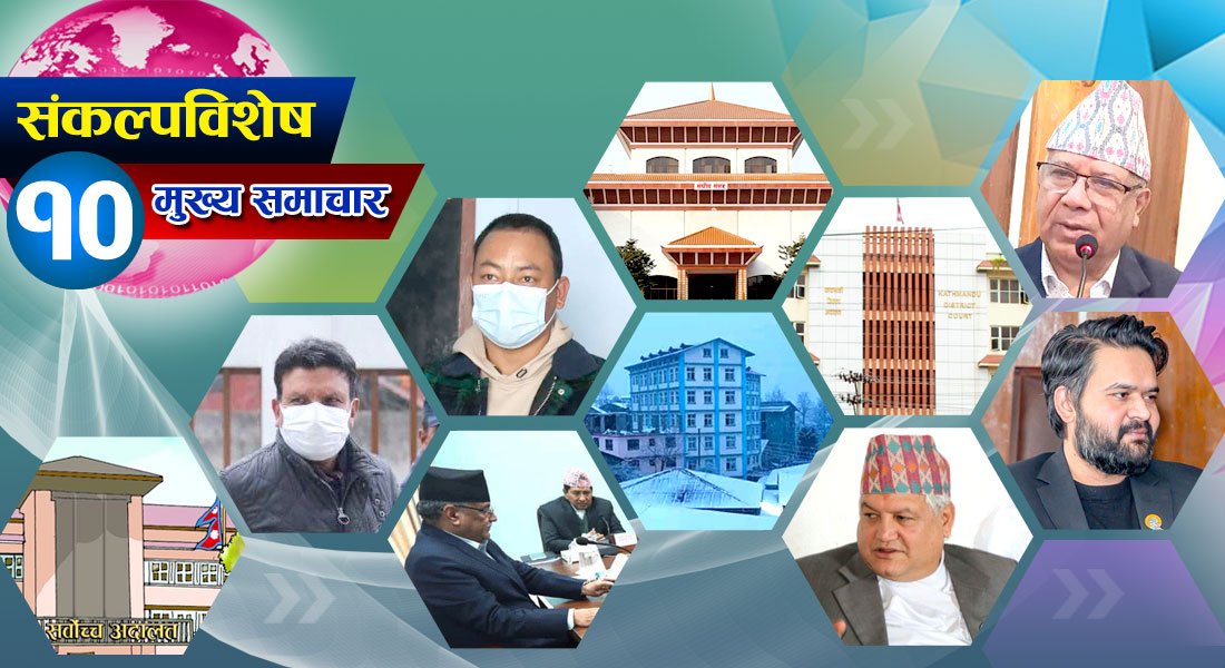 माघ १८ गते बिहीबार संकल्प खबरले दिनभरी घटेका मुख्य १० मुख्य समाचार तयार पारेको छ । दिनभरी घटेका घटनालाई एक साथ हेर्न मिल्नेगरी संकल्प विशेष १० समाचारमा मुलुकमा घटेका मुख्य समाचारलाई समेटिएको हो । बिहीबार तयार पारिएको मुख्य १० समाचारमा देखि