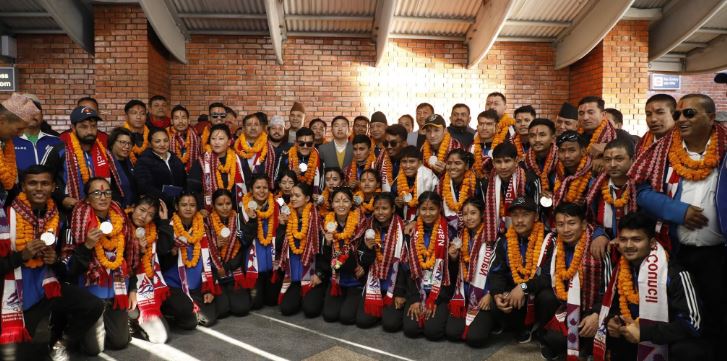 टोलीलाई राष्ट्रिय खेलकुद परिषद् (राखेप)का उपाध्यक्ष ध्रुव आचार्य, सदस्य(सचिव टंकलाल घिसिङ, युवा तथा खेलकुद मन्त्रालयका सचिव डा .हरिप्रसाद लम्साल, खो खो संघका अध्यक्ष प्रदीप महर्जनलगायतले त्रिभुवन विमानस्थलमा स्वागत गरेका थिए । नेवारी धिमे बाजा र नेपाल प्रहरीको ब्याण्ड बाजासहित टोलीको भव्य स्वागत गरिएको थियो ।