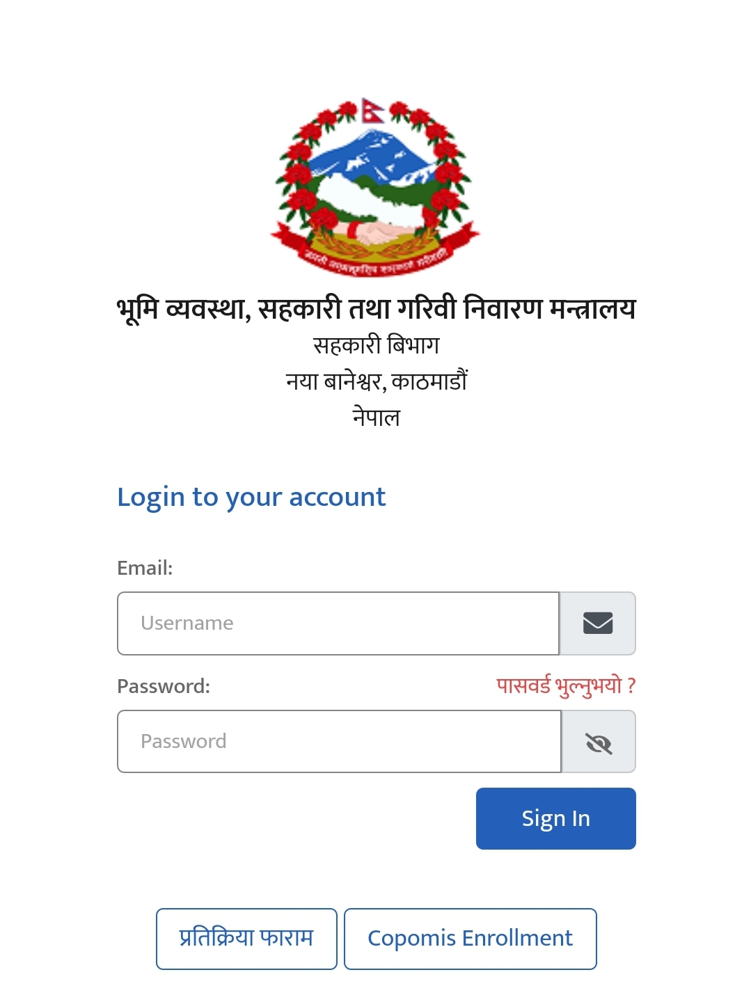 काठमाण्डौ । सहकारी बिभागबाट संचालनमा रहेको सहकारी तथा गरिबी सम्बन्धी व्यबस्थापन सूचना प्रणाली (COPOMIS) COPOMIS नेपाल सरकारको पूर्ण लगानीमा आर्थिक बर्ष २०७१/७२ मा निर्माण गरिएको एक Web Based Software अर्थात Web Browser मार्फत चलाउने software हो जसले सहकारी क्षेत्रका स्थानीय तहदेखि राष्ट्रिय स्तरसम्मका सहकारी संघ/संस्थाको सूचना एवं तथ्याङ्क संकलन गर्ने, प्रशोधन गर्ने र प्रतिवेदन दिने काम गर्छ ।