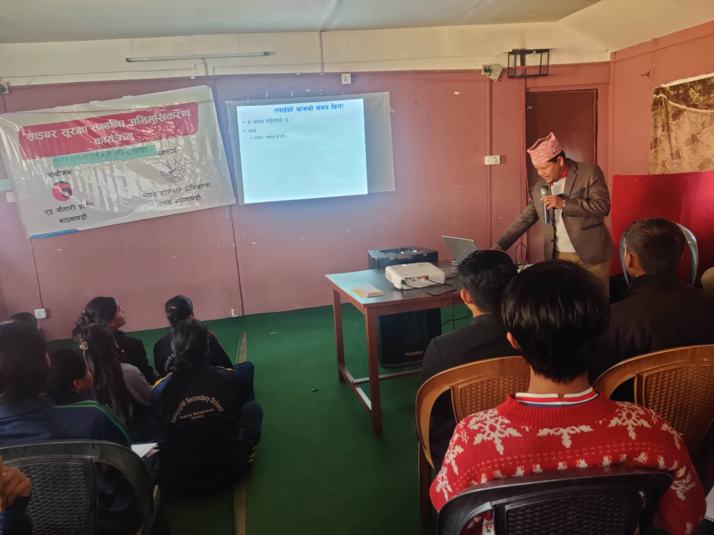सामाजिक सञ्जालको प्रयोग, पासवर्ड के कसरी राख्ने ? फेसबुक, जिमेल, बैंक अकाउन्ट कसरी सुरक्षित गर्ने ? कुनै ठाउँमा जाँदा तस्बिर राख्ने कि नराख्ने ? विदेशबाट पैसा आएको प्रलोभन दिँदा के गर्ने ? जस्ता विषयमा सहजकर्ता भट्ट र रुपाखेतीले जानकारी दिएका थिए । कार्यक्रम नेपाल दूरसञ्चार प्राधिकरणको सहकार्यमा एड चौतारी प्रालिले आयोजना गरेको थियो । कार्यक्रममा शिक्षक, विद्यार्थी, अभिभावकको उल्लेख्य उपस्थिति रहेको थियो ।