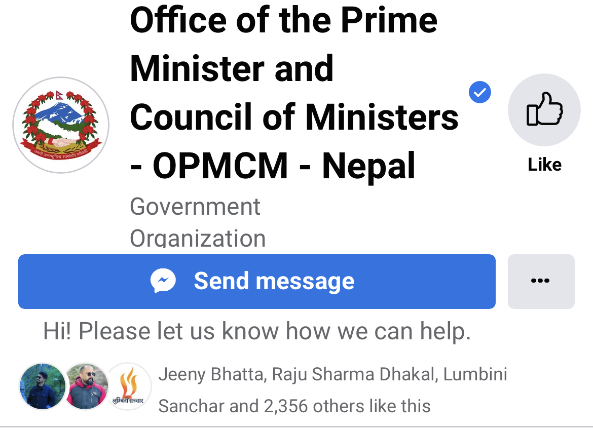 प्रधानमन्त्रीको स्वकीय सचिवालयको आइटी टिमको पहलमा उक्त पेज पुनः सञ्चालनमा आएको हो। भेरिफाइड उक्त पेज विगत दुई वर्षदेखि अवरूद्ध रहँदै आएको थियो।