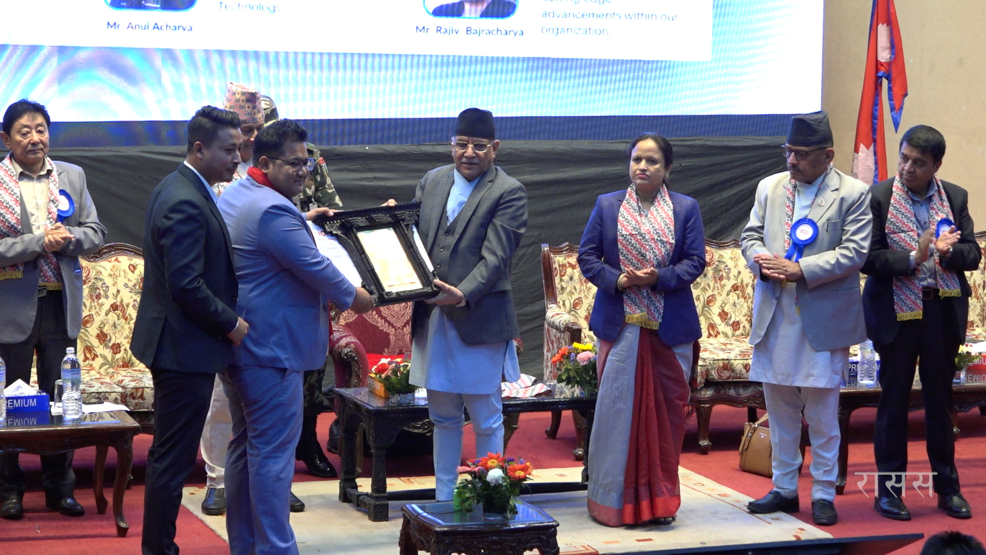 काठमाडौं । सरकारले सूचना प्रविधि क्षेत्रको विकास र विस्तारमा महत्त्वपूर्ण योगदान दिने संस्था तथा व्यक्तिलाई पुरस्कृत गरेको छ । सातौँ राष्ट्रिय सूचना तथा सञ्चार प्रविधि दिवसका अवसरमा आज यहाँ आयोजित कार्यक्रममा प्रधानमन्त्री पुष्पकमल दाहाल ‘प्रचण्ड’ले सूचना प्रविधिसम्बन्धी विभिन्न विधाका पुरस्कार प्रदान गरे ।