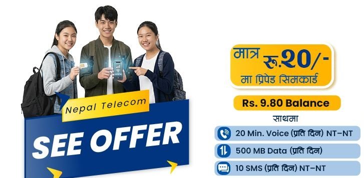 टेलिकमले घोषणा देशभरका कार्यालयबाट विद्यार्थीले मात्र २० रुपैयाँमा नयाँ सिमकार्ड खरिद गर्न सक्नेछन्। उक्त नयाँ सिममा मेन ब्यालेन्सका रूपमा ९ रुपैयाँ ८० पैसा व्यालेन्स उपलब्ध हुनेछ, जसबाट जुनसुकै नेटवर्कमा कल गर्न, एसएमएस गर्न वा डाटा चलाउन सकिनेछ।