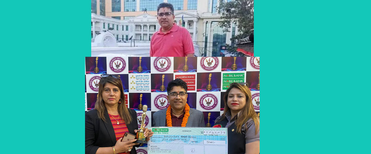 काठमाडौं । काठमाडौं उपत्यका खानेपानी व्यावस्थापन बोर्डका (चिफ फाइनन्स अफिसर) तथा बरिष्ठ साहित्यकार रामचन्द्र ढकाल सामना म्युजिक क्रियसन प्रा.लि द्वारा आयोजित तेस्रो रास्ट्रिय साधना म्युजिकअवार्डबाट सम्मानीत भएका छन् । सामना म्युजिक क्रियसन प्रा.लिले रोयल दरबार रेस्ट्रो महाराजगंजमा बुधवार गरेको कार्यकमबाट ढकाल सम्मानीत भएका हुन् । उनी बरिष्ठ साहितयकारमात्र होइनन् बुद्धिजीवी, समाजसेवी तथा कुशल छवि भएका व्यक्ति हुन ।