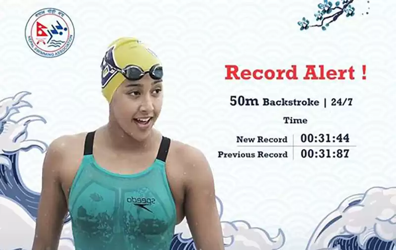 काठमाडौं । दक्षिण एशियाली खेलकुद (साग)की ४ स्वर्ण पदकधारी गौरिका सिंहले जापानको फुकुओकामा जारी २० औ संस्करणको वल्र्ड एक्वाटिक च्याम्पियनसिप २०२३ मा फेरि अर्को नयाँ राष्ट्रिय कीर्तिमान राख्न सफल भएकी छिन् ।