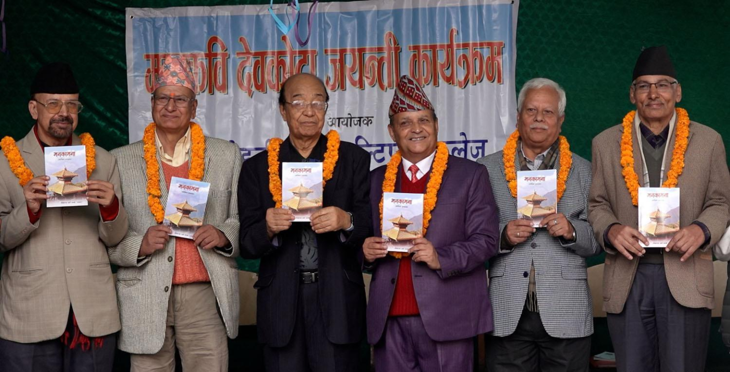 कार्यक्रममा उपेन्द्रराज शर्मा काफ्लेको कवितासङ्ग्रह ‘मनकामना’ को लोकार्पण गरिएको थियो । सो अवसरमा कलेजका छात्रा इशा गोतामे, काशिका रायलगायतले तिहार पर्व झल्काउने मौलिक सांस्कृतिक भैलो प्रदर्शन गरेका थिए । महाकवि देवकोटाको जन्म विसं १९६६ कात्तिक २७ गते लक्ष्मीपूजाका दिन काठमाडौँको डिल्लीबजारमा भएको थियो । उनी नेपाली साहित्यका कविता, आख्यान, नाटक र निबन्ध गरी साहित्यका चारवटै विधामा सशक्तरुपमा कलम चलाउने बहुमुखी प्रतिभाका धनी मानिन्छन् ।