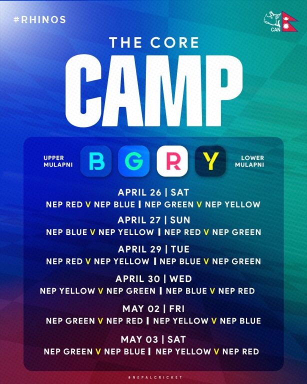 शनिबारदेखि मुलपानीका दुई वटा मैदानमा बन्द प्रशिक्षणका खेलहरु हुनेछन् । जसमा ६ दिनमा १२ वटा खेलहरू हुनेछन् । दुवै मैदानमा दिनको एक खेल हुनेछन् ।