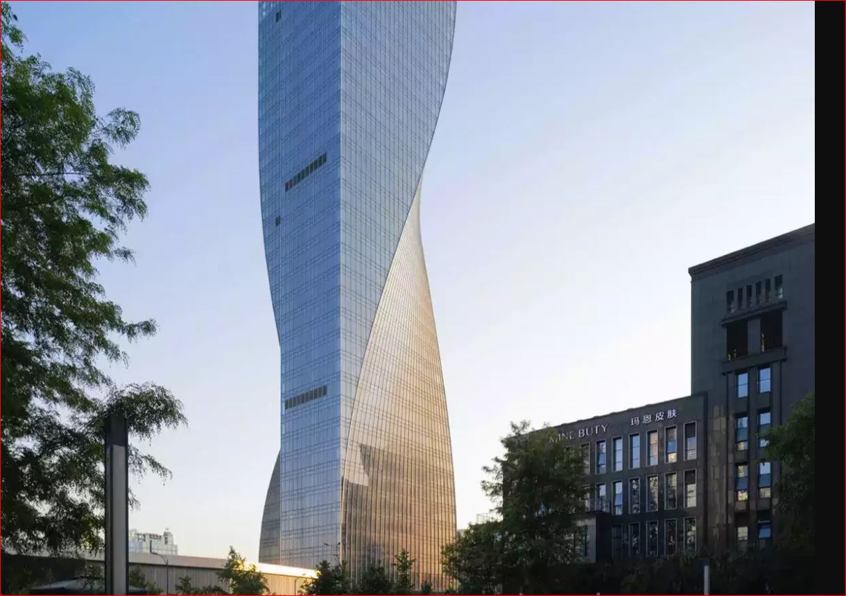 डिजाइन म्यागजिन डेजीनको रिपोटअनुसार चोङकिङको जियाङ्बेई जिल्लाको जिङफु प्लाजामा अवस्थित टावरमा दुईवटा दोहोरो घुमाउरा भाग छन्, जसले संरचना घुमिरहेको छ भन्ने महसुस गराउँछ ।